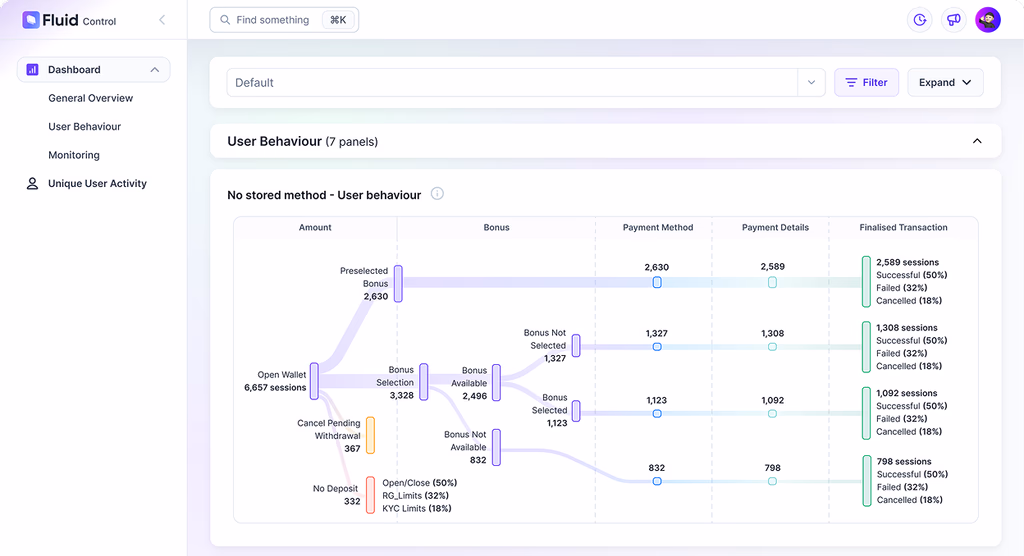Born from firsthand experience with the challenges online casinos face, Fluid was created with a clear mission: to increase player conversion by making payments seamless, intuitive, and intelligent.